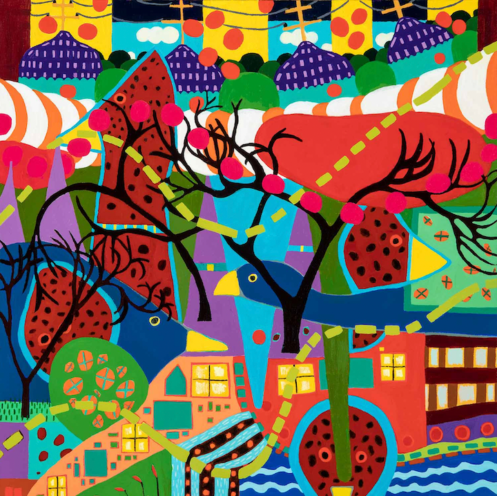 As grounded as my work is in current political and social narratives, it is equally critical that my paintings are aesthetically compelling. It is simply not enough for me to tell momentous stories. My paintings must hold all the often disparate vignettes together-each moving part connected to the whole. I strive to contain the often chaotic action, creating areas of calm and reflection on the picture plane. I purposely imbue the work with an ironically cheerful color palette, challenging the viewer to move beyond the carnival-like colors to discover the underlining conceptual underpinnings of the work. My paintings seek to engage, delight and resonate.